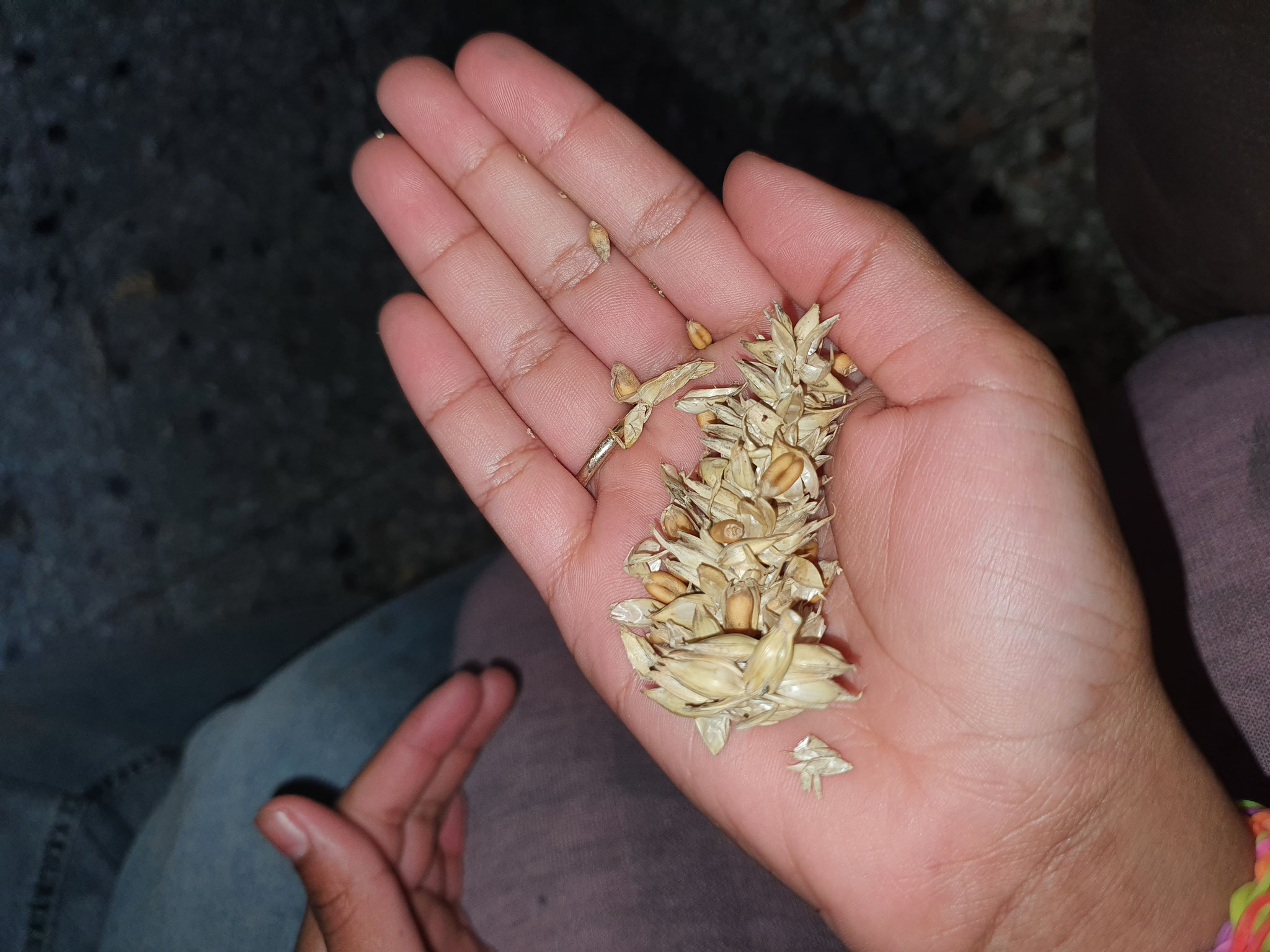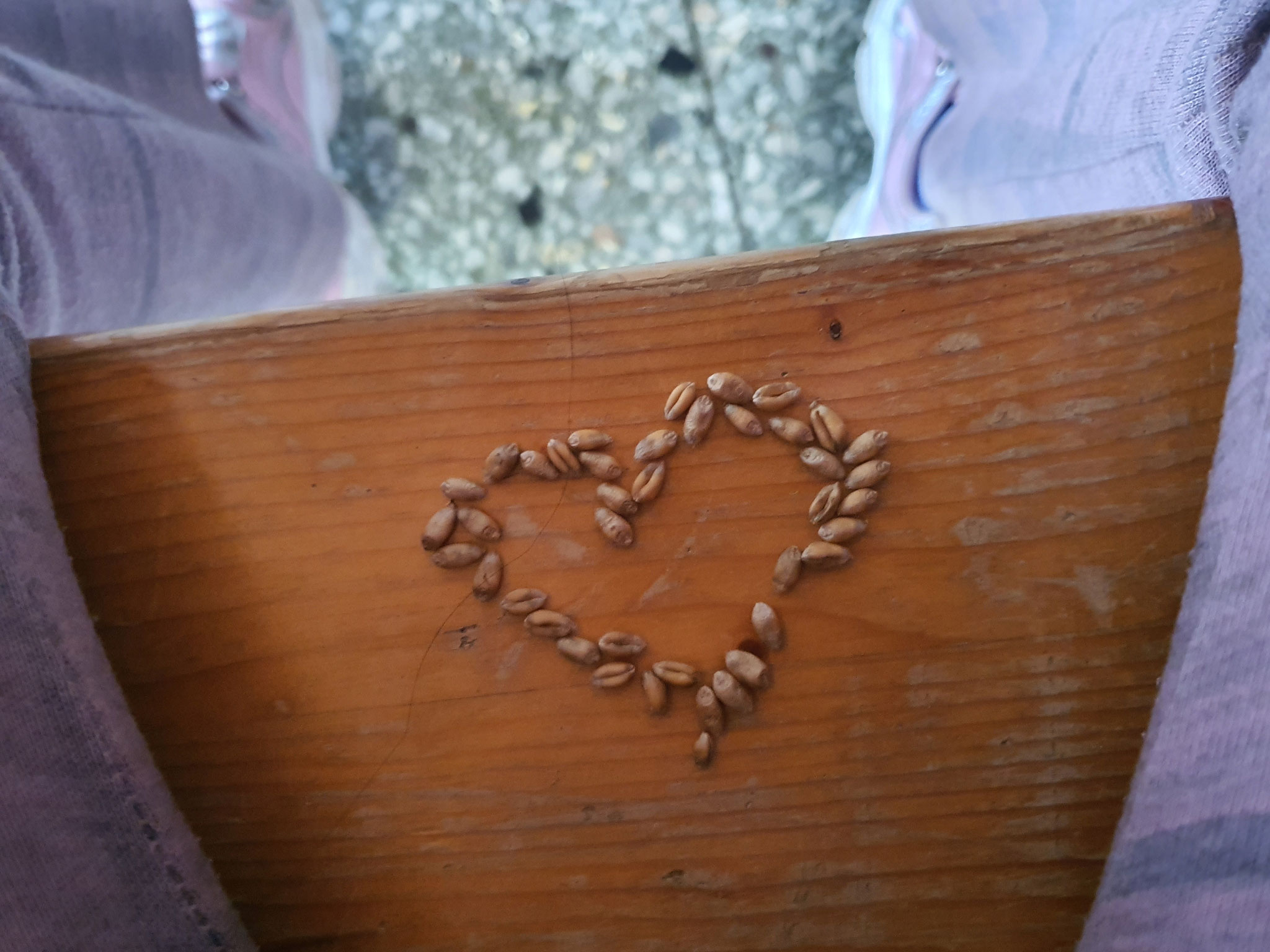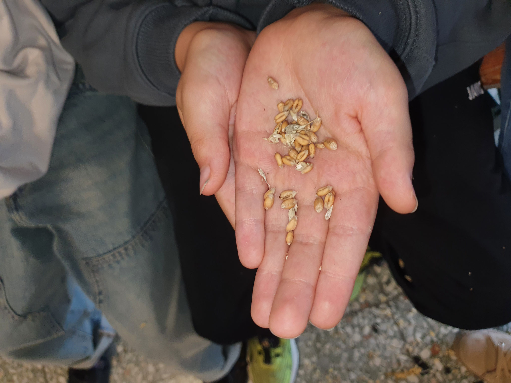 Alle Kinder durften mit den Händen die Körner aus den Ähren reiben.