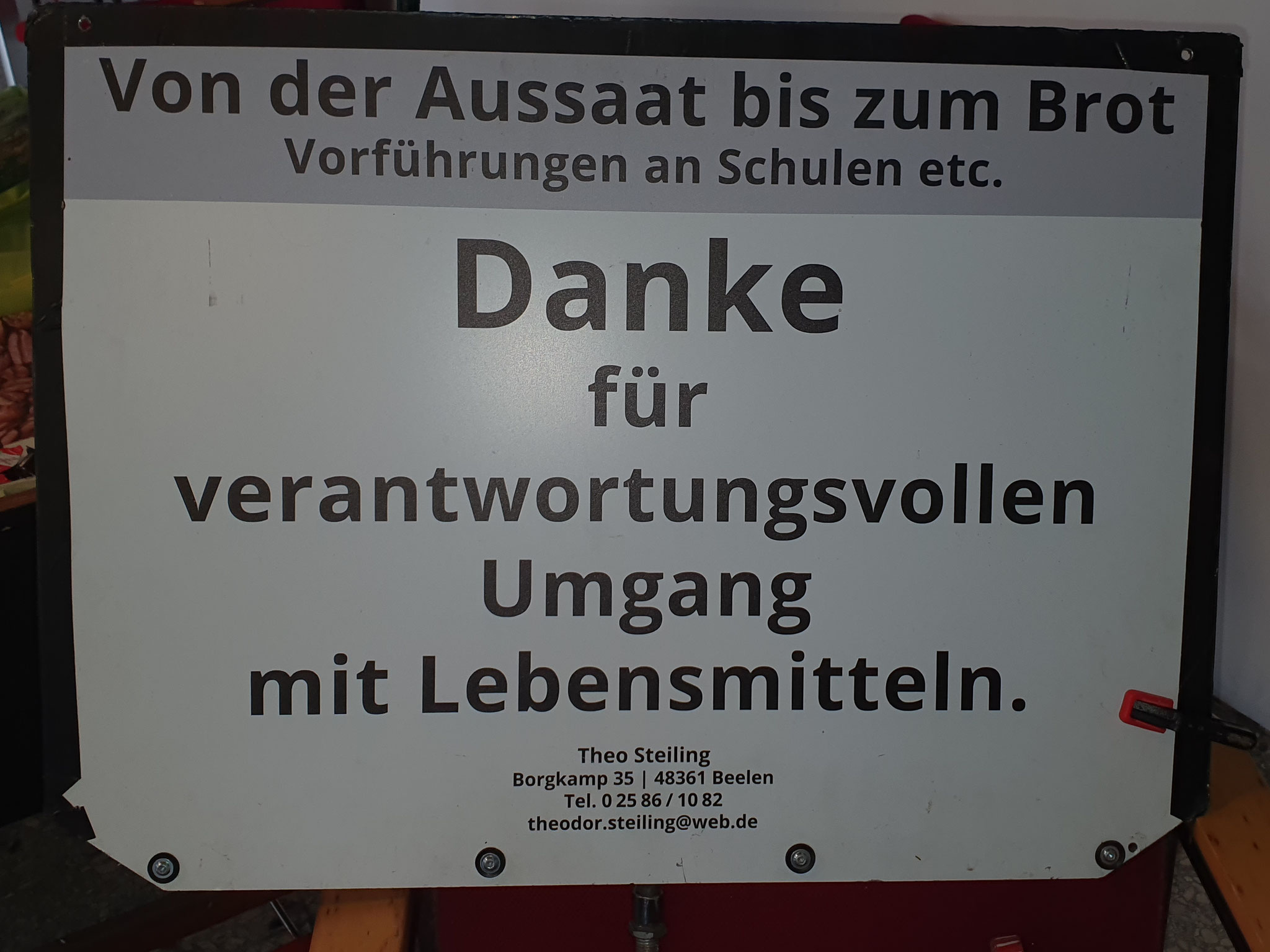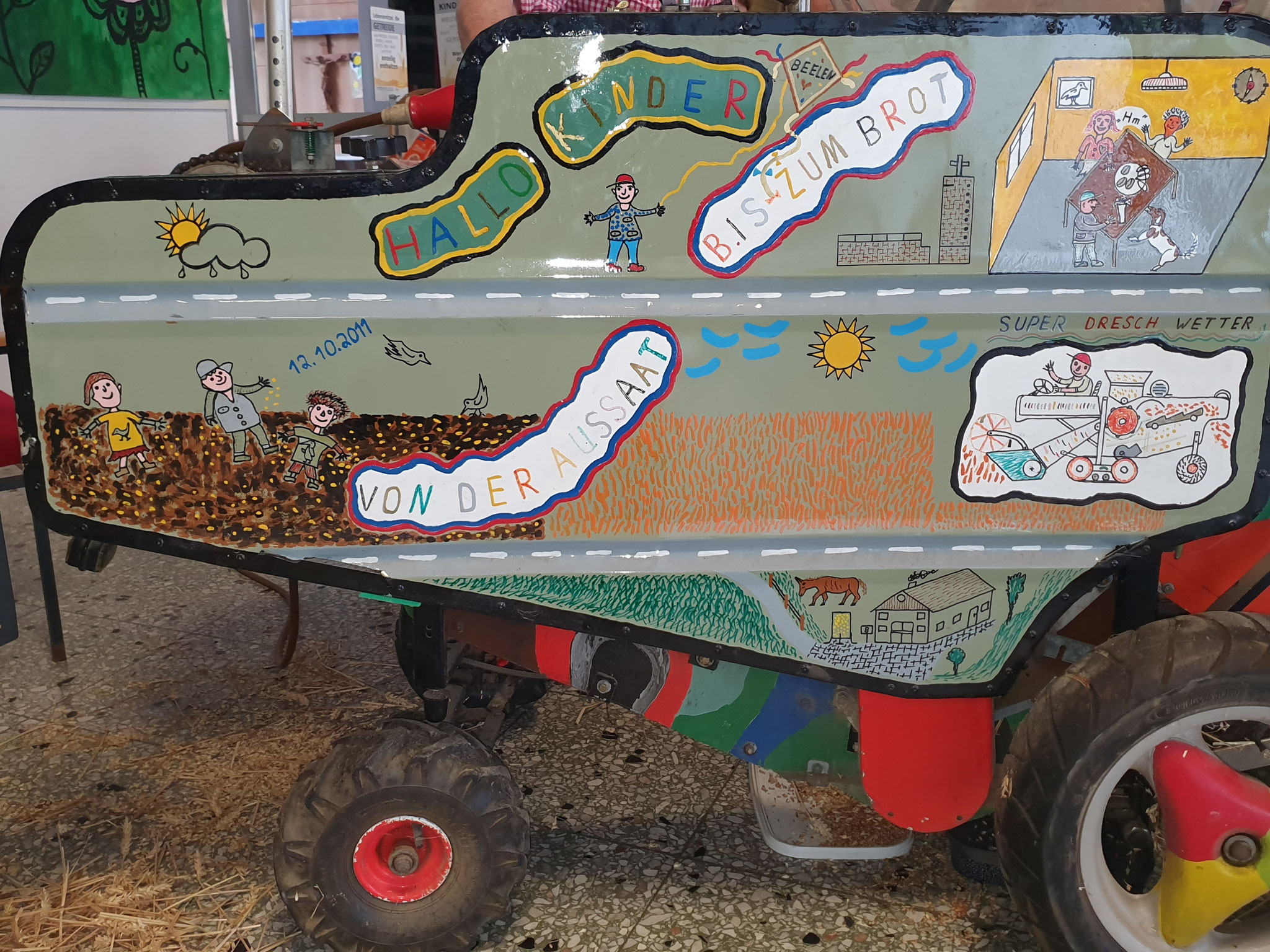 Der Höhepunkt war gekommen, als ein Kind auf den von Herrn Steiling selbst gebauten Mähdrescher im Miniformat steigen durfte und dieser in Gang gesetzt wurde.