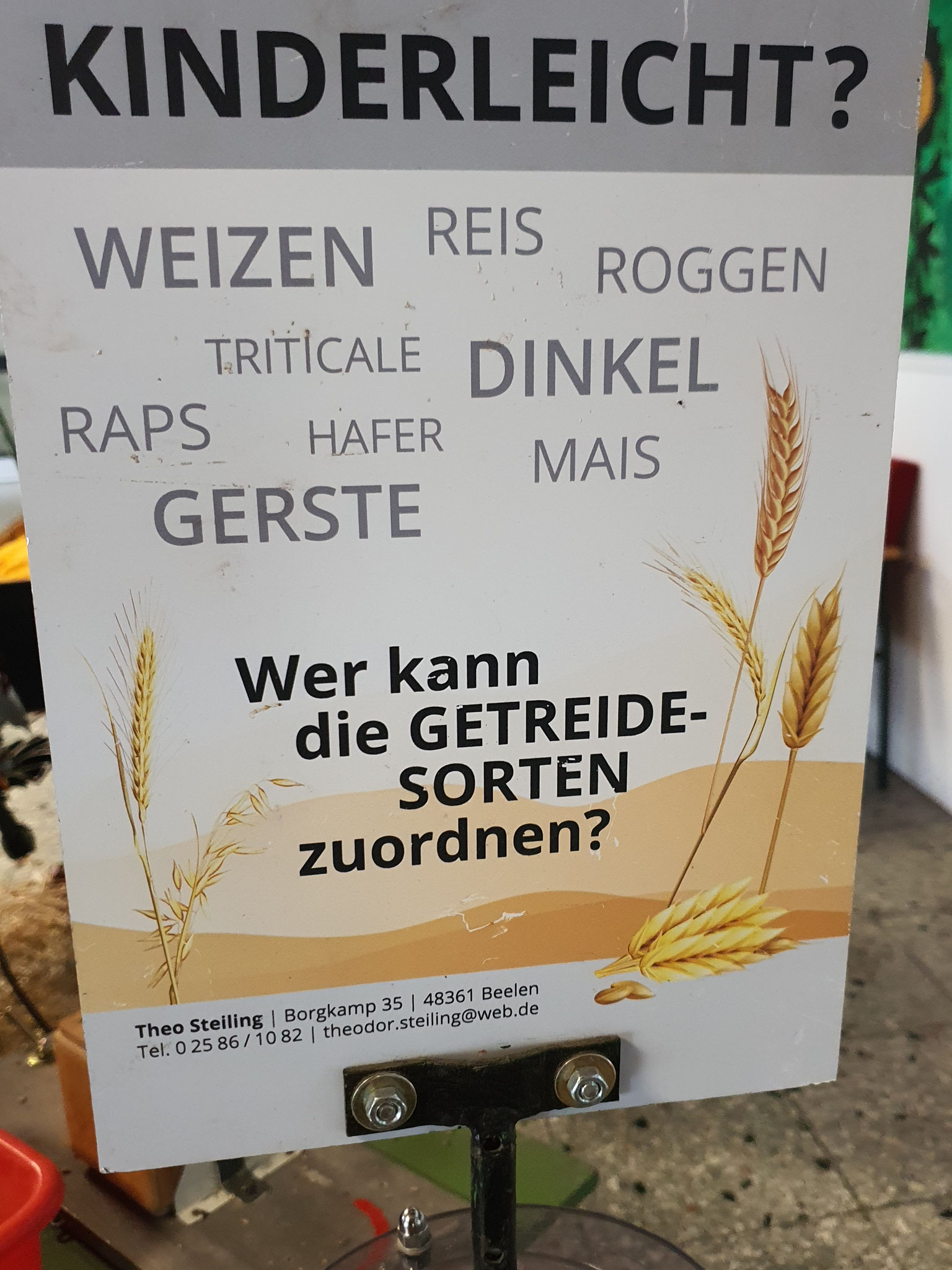 Es gab verschiedene Getreidesorten zu bestimmen, es wurde festgestellt, welche Lebensmittel aus Getreide hergestellt werden und wie viel Brot eine Person pro Jahr verzehrt.